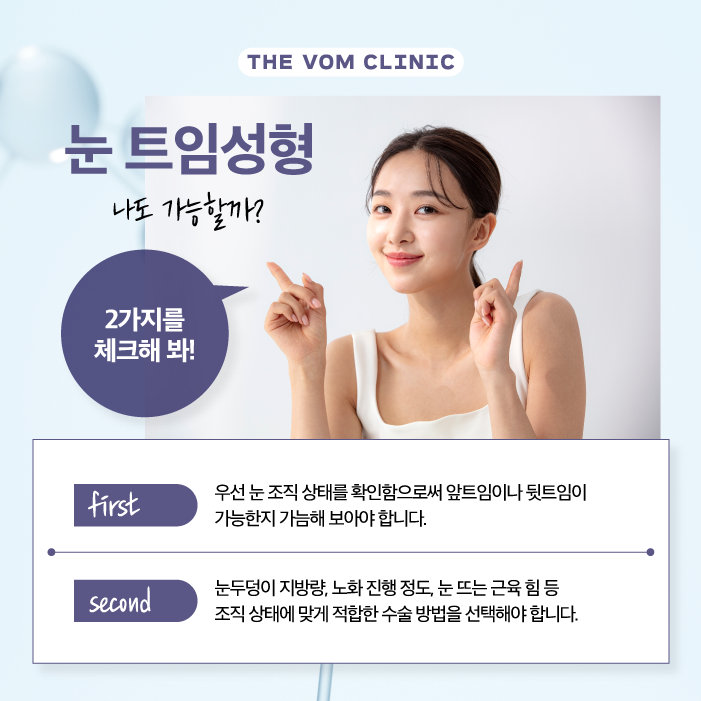 눈의 근육 상태, 처짐 정도, 지방의 양 등에 따라
