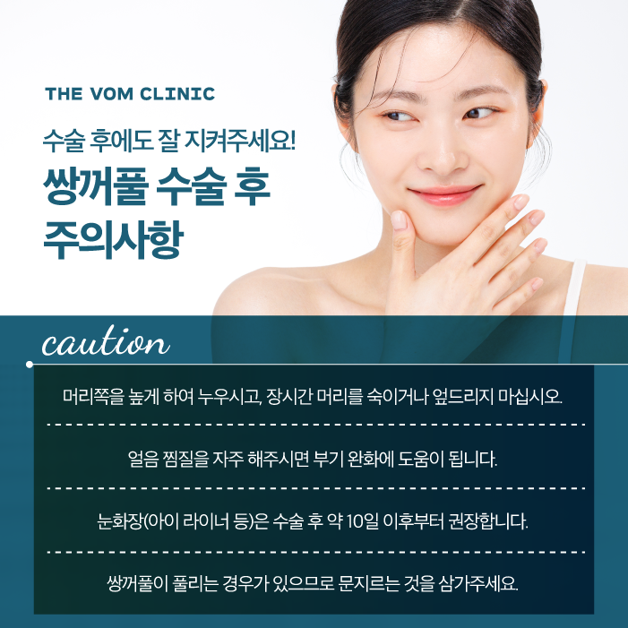 눈 주위에 화장을 하는 것은 약 10일 이후부터 권장됩니다. 특히, 아이 메이크업(아이라이너, 마스카라 등)은 회복 중인 부위에 자극을 줄 수 있으므로 아물기 전까지는 피하는 것이 좋습니다.