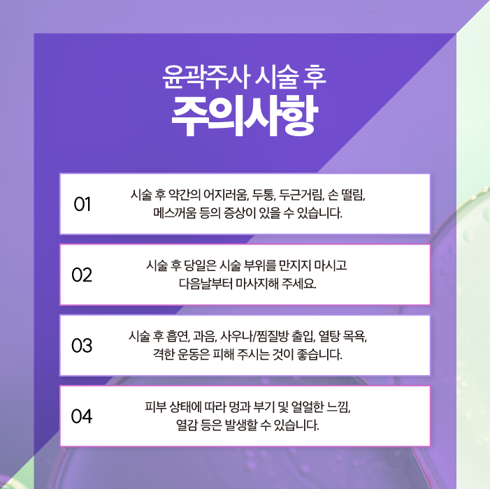 일산윤곽주사, 진행 후 주의할 점에 대해 알아볼까요?